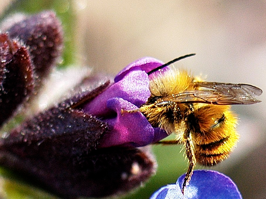 Zapylająca pszczoła samotna z rodzaju Andrena (pszczolinka). Fot. Marcin Zych