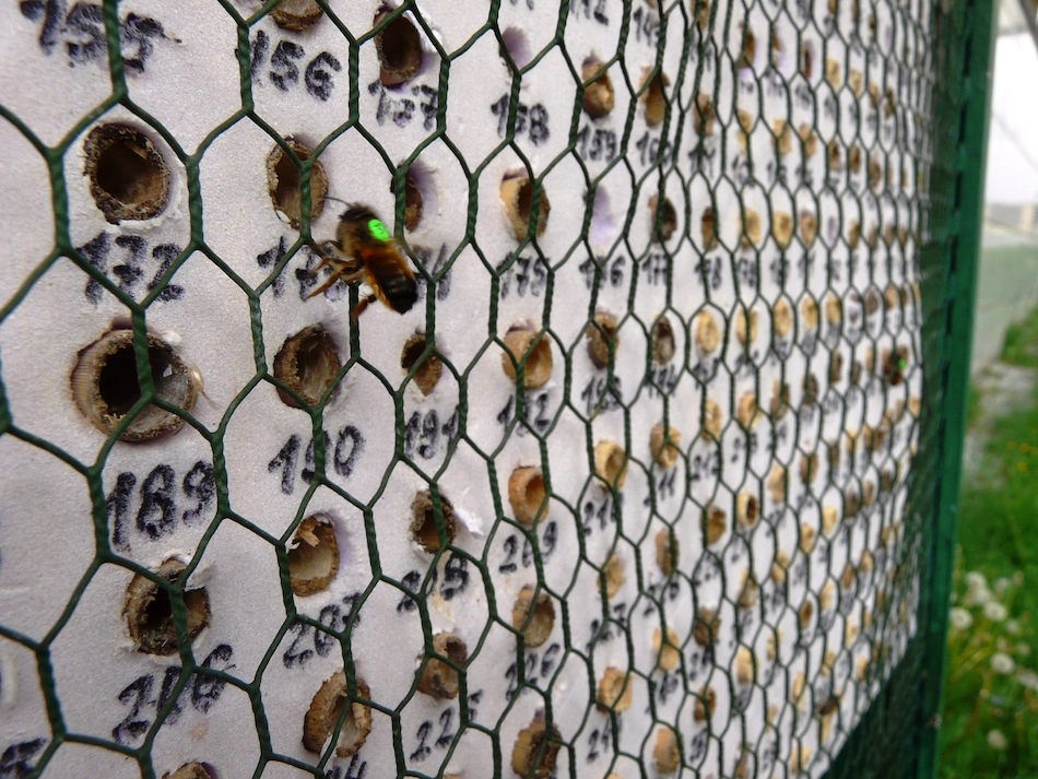 szafki z gniazdami (1) Samica murarki wraca do domu (mieszkanie nr 173), Instytut Nauk o Środowisku UJ, Kraków. Fot. Justyna Kierat