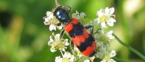 Chrząszcz barciel pszczołowiec (Trichodes apiarius), którego drapieżne larwy żerują w gniazdach pszczół, fot. Sergey M. Sazhin / Wikimedia commons