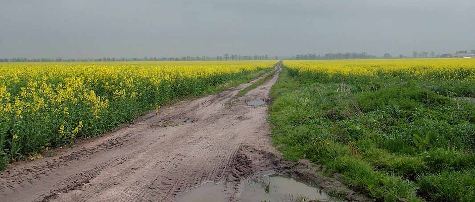 Droga przez pola rzepaku w Wielkopolsce, fot. Krzysztof Kujawa