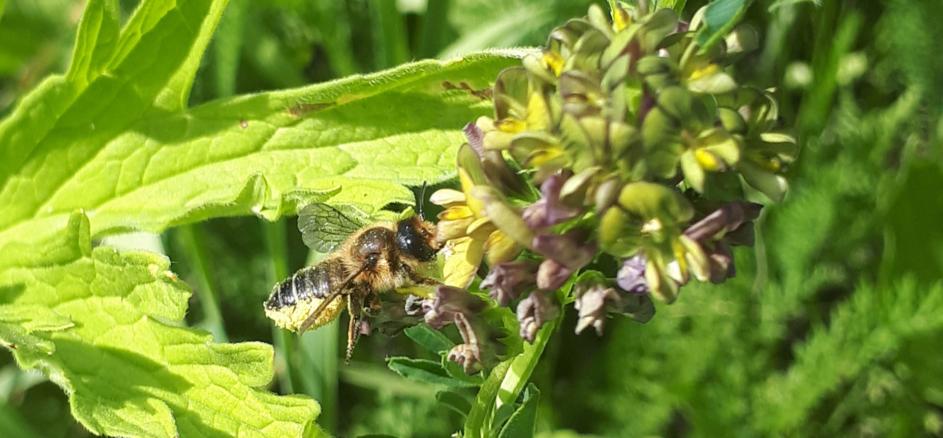 20190616_143239 W Polsce stwierdzono ok. 470 gatunków pszczół. Na zdjęciu samica z rodziny miesierkowatych, zbierająca pyłek na obficie owłosionym spodzie odwłoka. Fot. J.Kierat