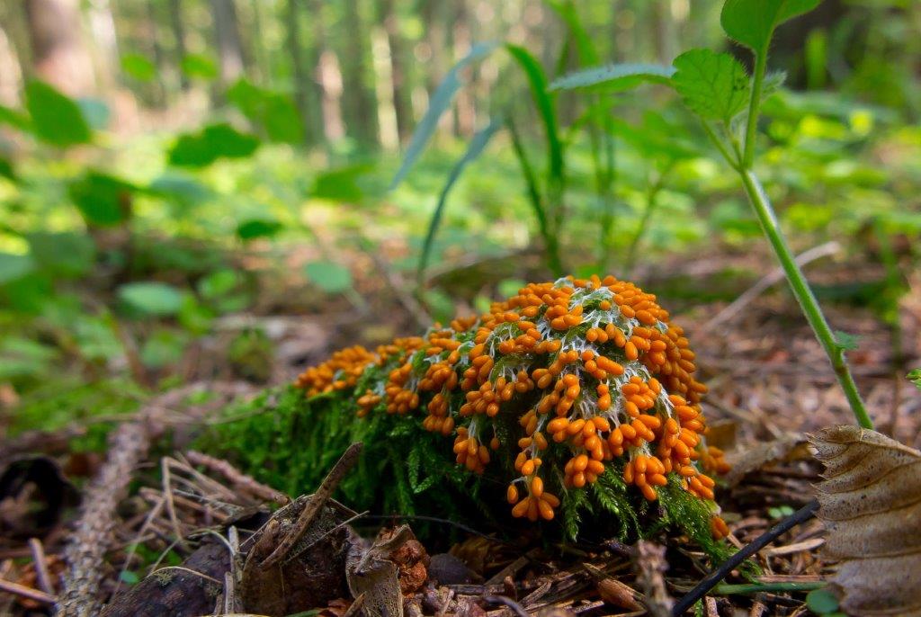 1gładysz-4232.jpg AW Śluzowiec, gładysz kruchy (Leocarpus fragilis) porastający "chrust" w Puszczy Białowieskiej. Zdj. Adam Wajrak