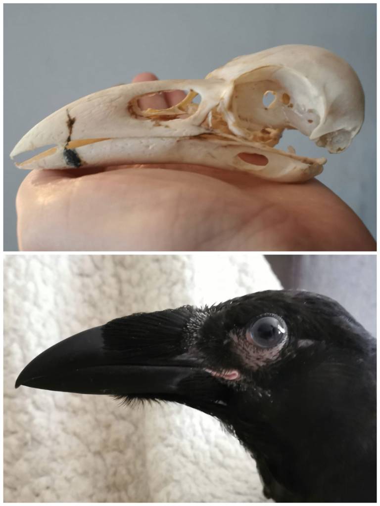 Duże nozdrza tego kruka świadczą o jego wrażliwym zmyśle powonienia. To przez nie wpada powietrze zawierające różne cząsteczki zapachowe, które tafiają na receptory węchowe, a informacja o nich przekazywana jest dalej do mózgu. A dokładnie do jego części odpowiedzialnej za przetwarzanie sygnału i jego interpretację. Część tę nazywamy węchomózgowiem, a jej najwyższa struktura to owalny twór zwany opuszką węchową.