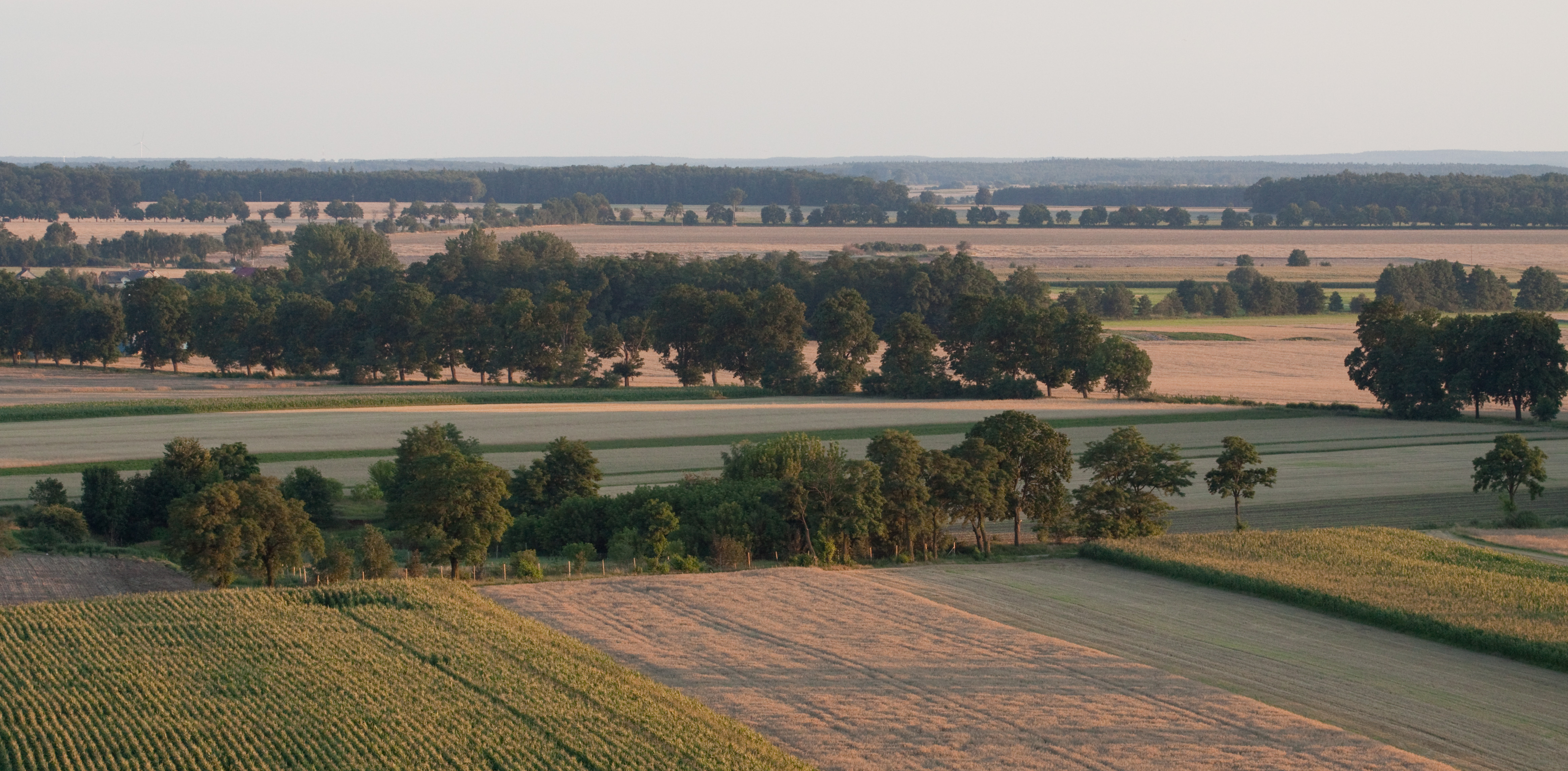 Tereny rolnicze w Parku Krajobrazowym im. gen. D. Chłapowskiego (okolice wsi Turew). Uznane już około 25 lat temu przez Radę Europy jako wzorcowo urządzony, urozmaicony krajobraz rolniczy. Fot. Krzysztof Kujawa.
