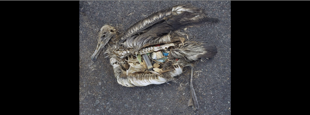 albatross Martwe pisklę albatrosa z żołądkiem wypełnionym plastikiem. Midway Atoll National Wildlife Refuge na Pacyfiku, wrzesień 2009. Fot. Chris Jordan